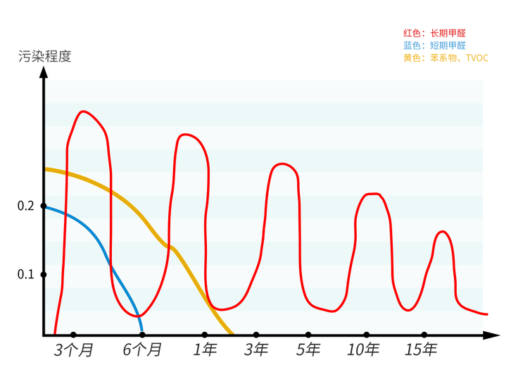 甲醛釋放持續且起伏較大,不同時間、環境條件下污染程度不同。